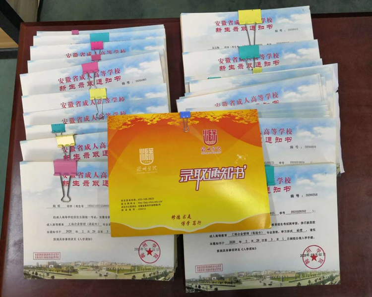 滁州学院2020级录取通知书已到办公室,学生可以选择就近办公室领取,或可以快递邮寄给各位录取的学生。需要快递的请您提供邮寄地址。为了保证邮件顺利到达,投递方式采取到付形式。