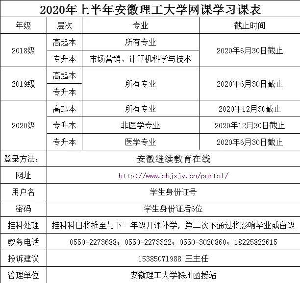安徽理工大学18级、19级、20级网络课程已经开始,具体如下: