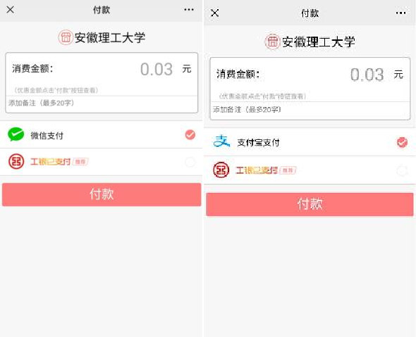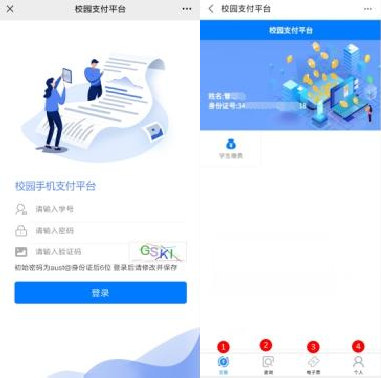 1.支付宝或者微信扫描下方二维码进入校园支付平台界面,根据提示输入身份证号或学号(学号见录取通知书右上角)、密码、验证码后登录校园支付平台。